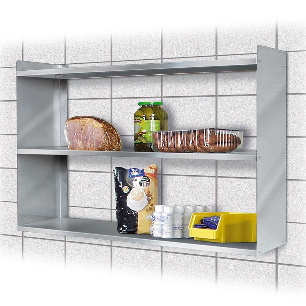 Stabiles, rostfreies Edelstahl-Wandregal mit 3 Böden ideal für Gastronomie, Hotellerie, Restaurants, Imbiss, etc. Die Regalböden haben eine Höhe von 20 mm sowie eine Tragkraft von 15 kg je Boden. Das Edelstahlregal ist mittels 2 Ösen zur Wandbefestigung besonders schnell und einfach aufzuhängen.