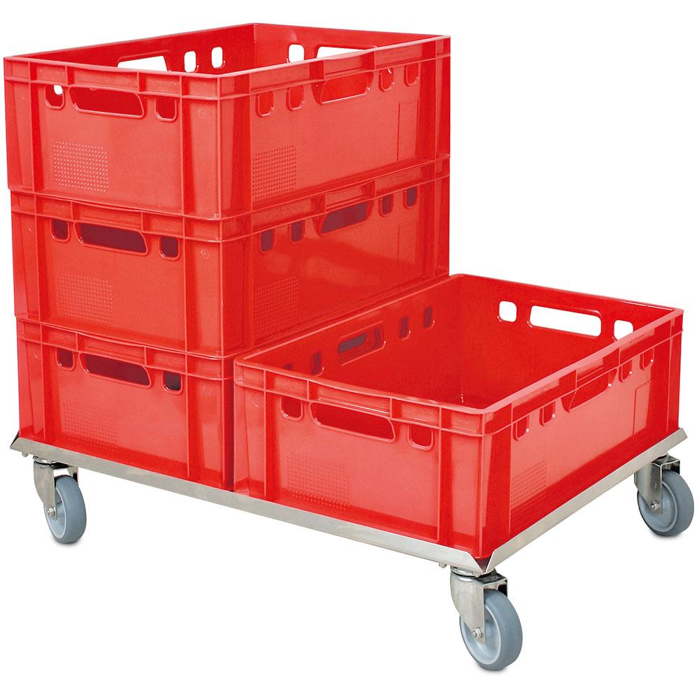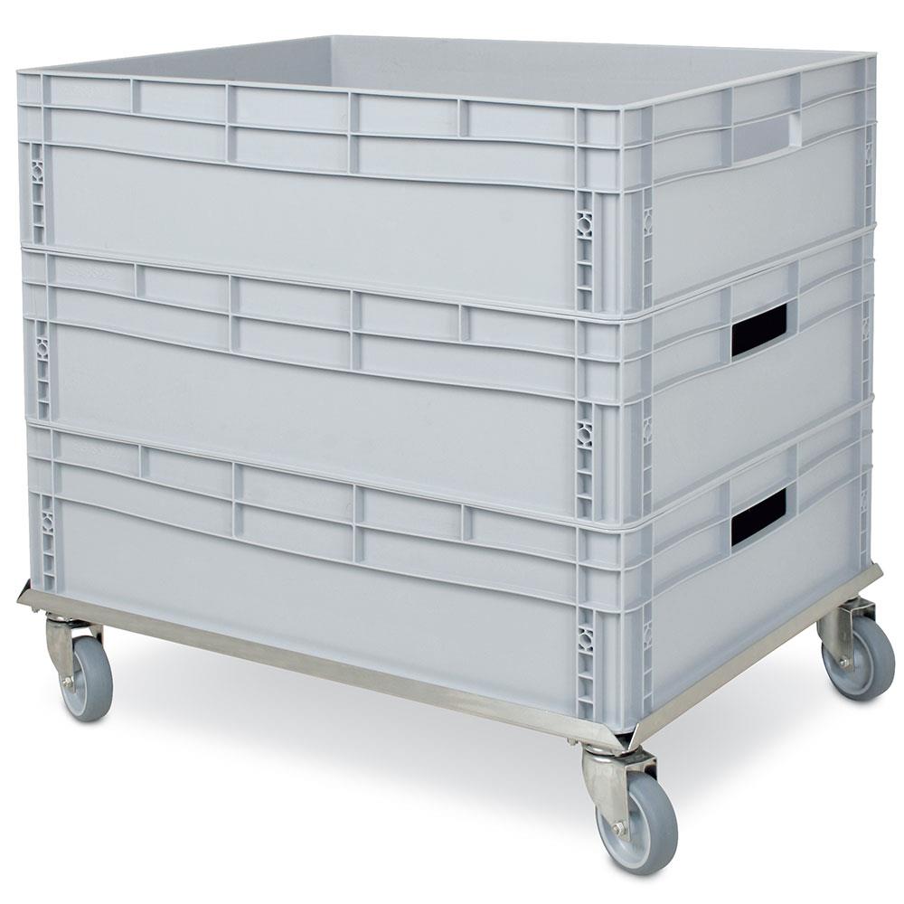 Edelstahl-Transportroller für 800x600 mm Behälter, 100 mm Gummi-Rad, Edelstahl Lenkrollen, Deck offen, Tragkraft 250 kg