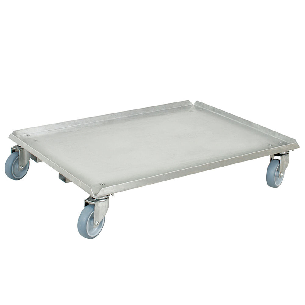 Edelstahl-Transportroller für 800x600 mm/2x 600x400 mm Behälter, 100 mm Gummi-Rad, Deck geschlossen, Tragkraft 250 kg
