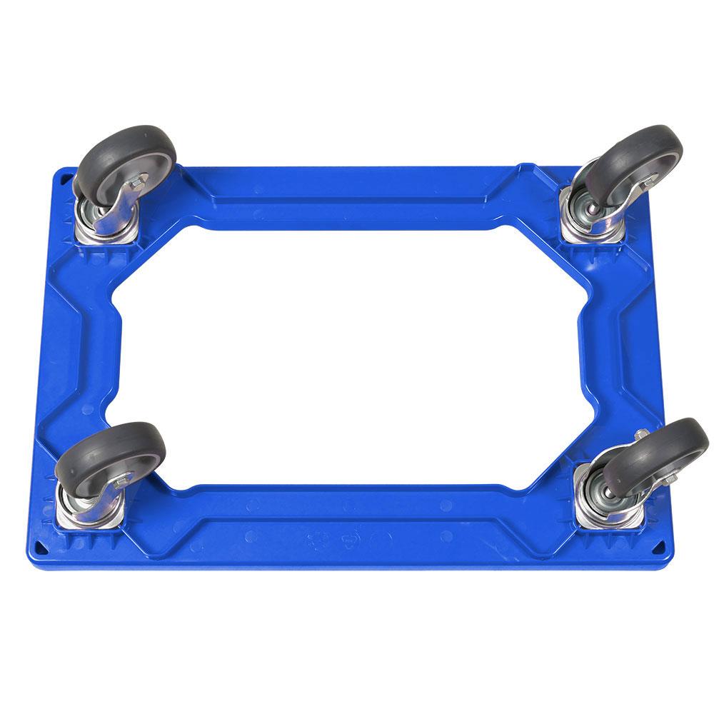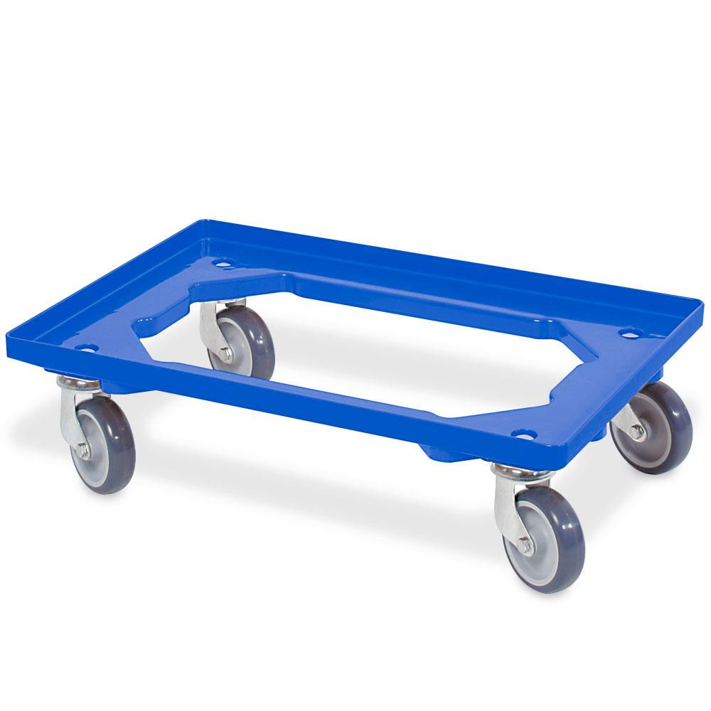 ABS-Kunststoff-Transportroller für 600x400 mm Eurobehälter, blau, 100 mm Gummi-Rad, Deck offen, Tragkraft 250 kg