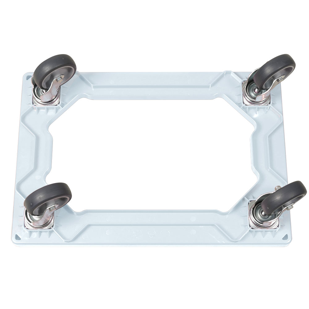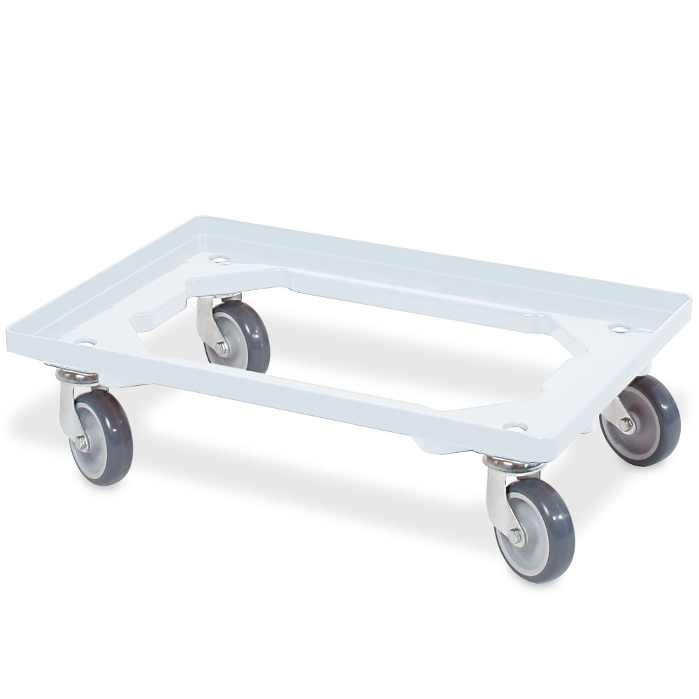 ABS-Kunststoff-Transportroller für 600x400 mm Eurobehälter, weiß, 100 mm Gummi-Rad, Deck offen, Tragkraft 250 kg