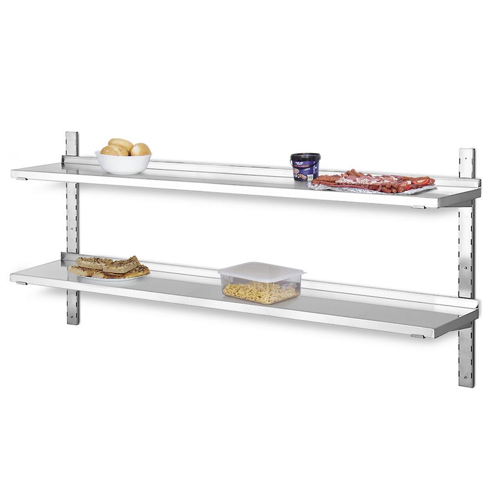 Stabiles, rostfreies Edelstahl-Wandregal mit 2 Böden zum Einhängen. Ideal für Gastronomie,... mehr