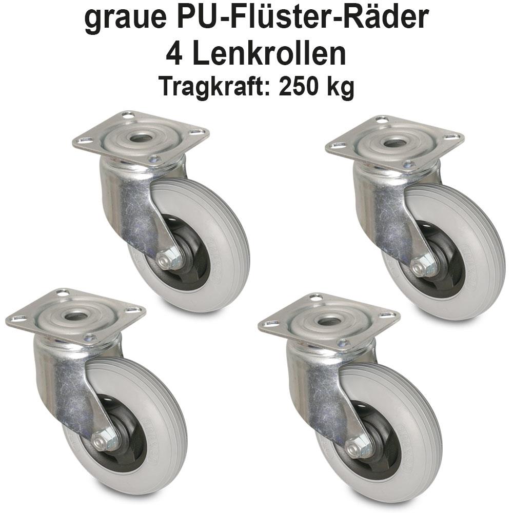 - 1 Satz = 4 Lenkrollen mit verzinkten Radgabeln und Flüsterrollen
