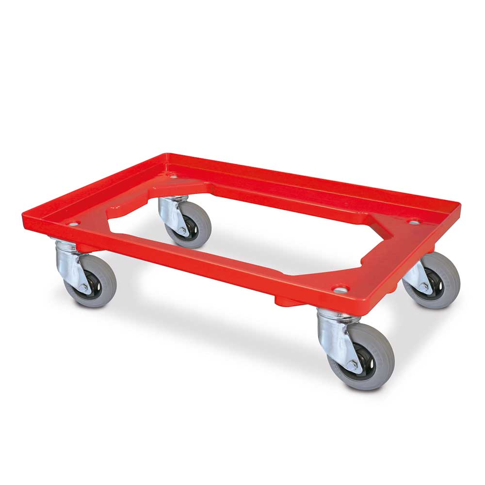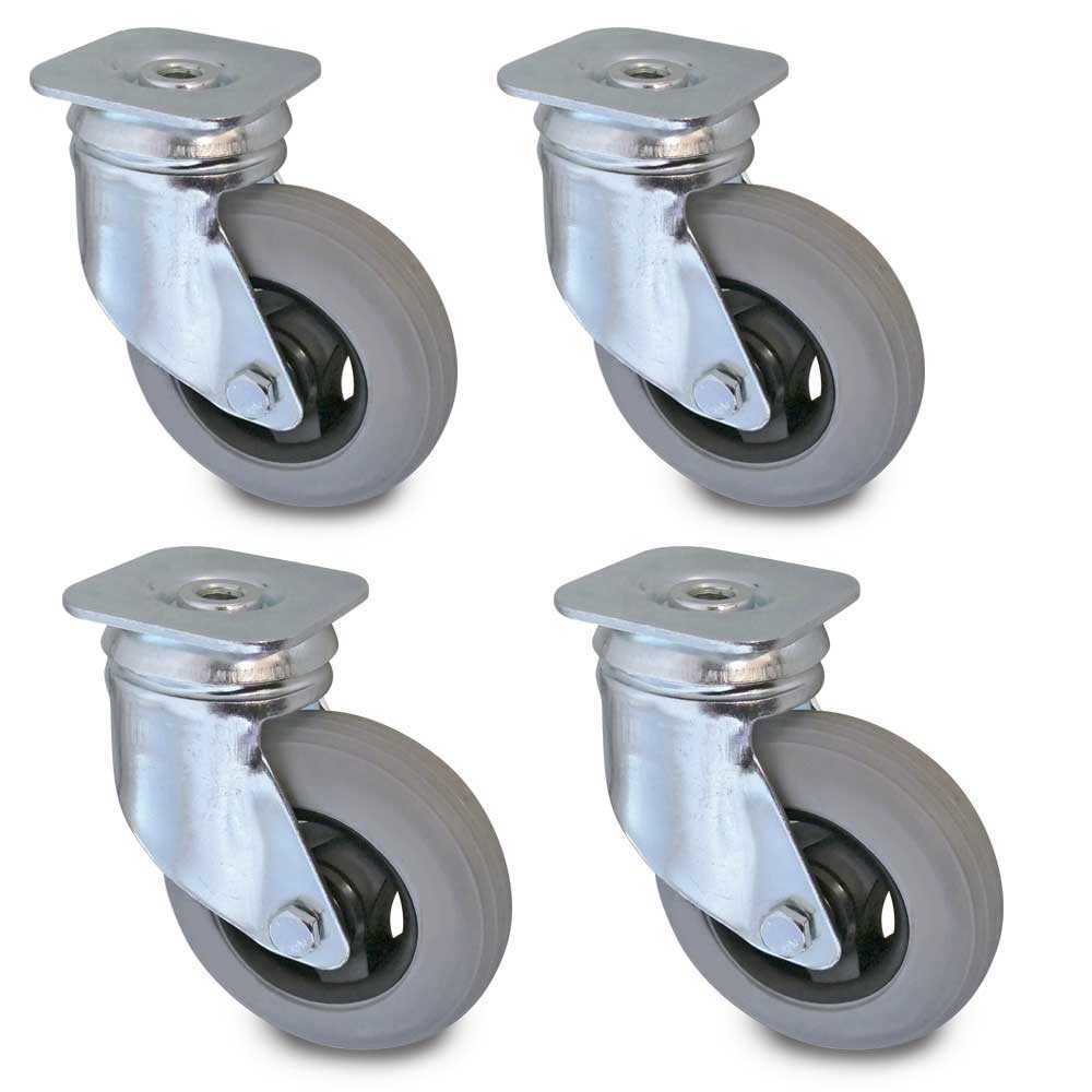 Nachrüstsatz Flüsterrollen Ø 100 mm mit verzinkten Radgabeln, für BRB-Transportroller aus ABS-Kunststoff
