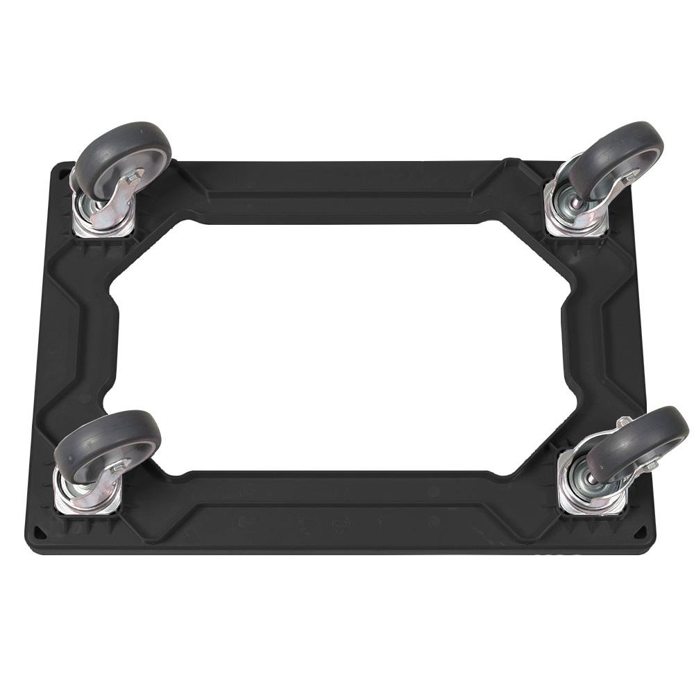 ABS-Kunststoff-Transportroller für 600x400 mm Eurobehälter, schwarz, 100 mm Gummi-Rad, Deck offen, Tragkraft 250 kg